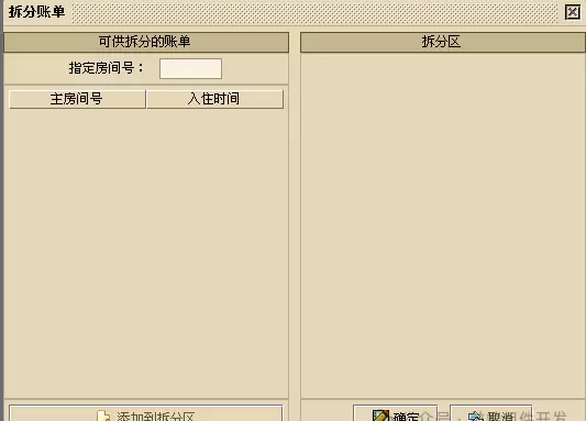 在“可供分拆的帐单”列表中,可通过方向键移动光标或用鼠标选中目标宾客,也可在“指定房间”后的文本框中输入房间号进行快速查找。