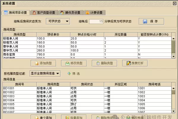 对于已存在的房间记录,选中某房间号后点击“删除类型”按钮,即可将其从系统中移除。