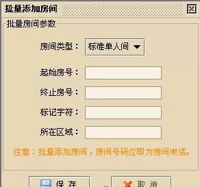 - 批量添加:点击“批量添加”按钮,进入批量录入界面(如图22),设定起始编号和数量等参数后保存,系统将一次性生成多个房间记录。