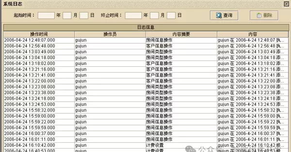 在查询区域设定起始时间和终止时间范围,点击“查询”按钮后,系统将在下方列表中展示该时间段内的所有操作记录。