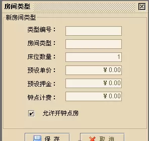 在房间类型管理区域,点击“添加类型”按钮将弹出新增类型窗口(如图18),填写相关信息后点击“保存”即可完成新类型创建。