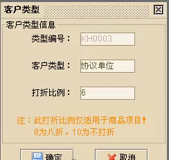 若需修改现有客户类型,点击“修改类型”按钮,系统将加载当前信息(如图26),修改完成后点击“确定”保存更改。