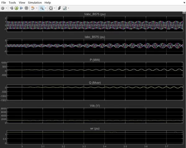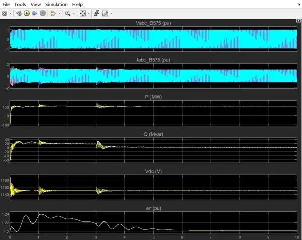 次同步谐振是一种电气系统与机械系统之间相互作用所导致的低频振荡现象,其频率低于电网同步频率。在双馈风电场中,由于DFIG的电磁动态特性与风电机组轴系的机械振动存在耦合,当串补电容改变了线路阻抗特性后,可能使电气系统的固有频率接近风机机械系统的共振频率,从而激发持续振荡。这种振荡不仅会加速叶片和传动链的疲劳损伤,还可能导致电压波动、功率震荡,严重时甚至引发电网失稳。