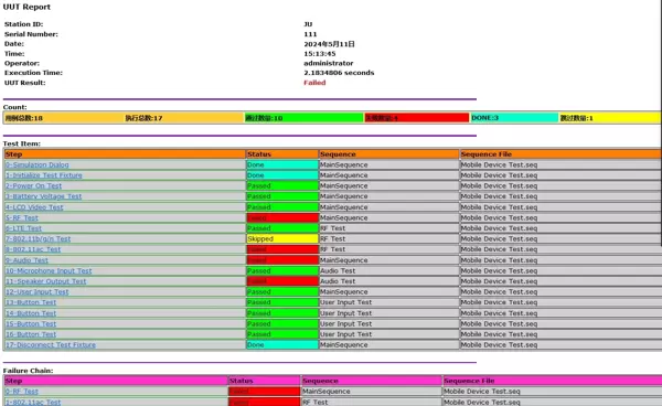 最近在对TestStand的报告格式进行定制化调整,发现其自带的报告插件虽然基础功能完备,但在实际使用中仍存在诸多不便。尤其当测试项数量庞大时,原始报告结构混乱、信息密度过高,导致问题定位效率低下。本文介绍一种无需二次开发、直接通过修改报告生成序列实现报告优化的方法,支持多语言环境且一次配置即可全局生效。