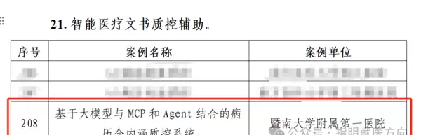 项目成果《基于大模型与MCP和Agent结合的病历全内涵质控系统》已入选广东省“人工智能+医疗卫生”典型应用场景案例。