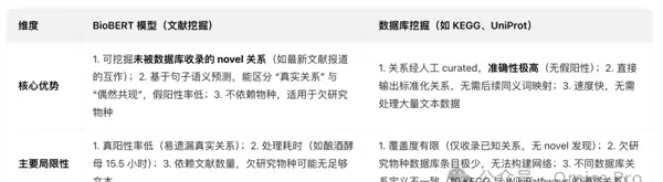 核心方法比较:BioBERT 模型 vs 数据库挖掘