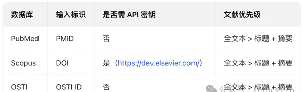 - 输入文献可通过程序自动从指定数据库拉取,也可由用户提供本地文本文件;