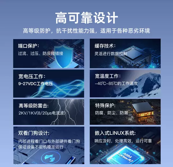 该服务器采用全国产硬件架构,搭载ARM Cortex-A系列64位双核1.2GHz处理器,配备256MB RAM与256MB Flash存储空间,并运行嵌入式Linux操作系统,实现从芯片到系统的全链路自主可控。整机设计严格遵循国家信息安全规范,适用于能源、交通、智能制造等对安全性要求极高的关键基础设施领域,有效防范外部风险,确保通信数据的安全可靠。