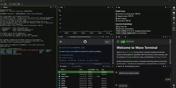 Wave Terminal 是一款面向开发者的现代化终端工具,具备多任务并行处理能力。它支持在同一界面中完成代码编辑、文件浏览、图片预览以及与AI助手实时交互等操作,兼容 macOS、Linux 和 Windows 系统。其模块化设计允许用户自由拖拽布局,灵活配置工作区,显著提升工作效率。