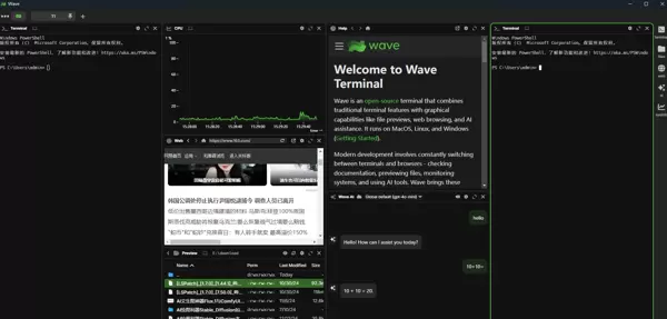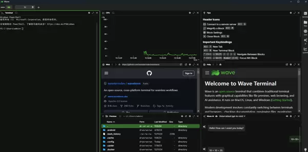 在实际使用过程中,Wave Terminal 的多窗口管理和模块自定义功能表现出色。例如,可以同时开启多个命令行实例、嵌入浏览器标签页,并随时调用AI辅助解决技术问题,切换流畅且响应迅速。需要注意的是,不同操作系统下的安装方式略有区别:Windows 用户只需双击安装包即可完成部署,而 macOS 与 Linux 用户应参考官方文档进行对应操作。