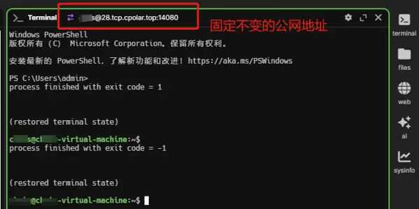 为突破这一限制,可结合 CPolar 实现内网穿透。通过其公网映射功能,无需复杂网络设置,即可生成可从外网访问的地址。无论使用手机、平板还是异地电脑,都能随时随地连接本地终端服务,实现项目文件查看、实时协作预览等功能,真正让终端工具摆脱地理位置束缚。