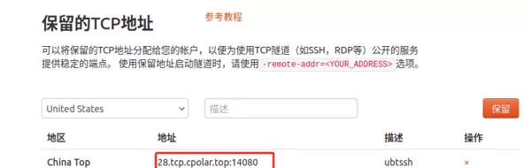 为了保证连接稳定性,避免每次重启后地址变化,建议配置固定的公网地址。通过 CPolar 的保留地址功能绑定专属域名或IP,使远程访问更加便捷可靠,适合长期用于团队协作或持续集成场景。