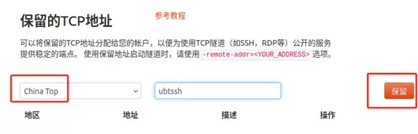 登录 Cpolar 官网后,点击左侧导航栏的“预留”选项,选择“保留 TCP 地址”,填写备注如“ssh”,然后点击“保留”按钮。
