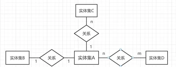 - 多对多 (m:n):实体集A中的每个实体可对应实体集D中的多个实体,反之亦然。