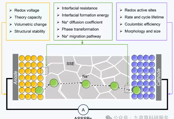 然而,技术进步仍面临多重挑战:固态电解质的离子电导率偏低、固–固界面接触阻抗大、材料在循环过程中出现显著体积变化以及副反应频发等问题亟待解决。由于钠离子半径较大,导致其在晶格中迁移速率较慢,同时界面接触不理想易诱发枝晶生长;电极材料在反复充放电过程中的形变进一步加剧了界面失稳现象。这些跨尺度的复杂机制难以仅依赖实验手段进行系统解析。