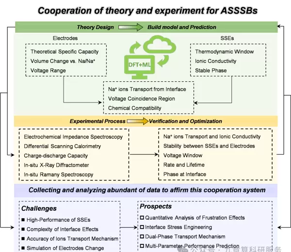 【总结与展望】 本综述从理论与实验相结合的角度出发,系统梳理了近年来在固态电解质、正极材料、负极材料及其界面设计四大核心领域取得的重要进展,揭示了计算模型如何指导实验优化以实现更高性能的全固态钠电池开发。