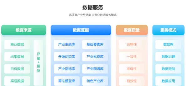 - 自有数据沉淀:基于多年产业服务积累,形成涵盖企业行为轨迹、产业链协作关系、市场需求变化等在内的专属数据资产,总量超100亿条,具备独特的行业理解和应用价值。
