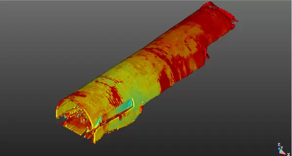 通过对比衬砌施工前后两次扫描数据,精确获取二次衬砌厚度分布状况;同时将实际点云模型与设计模型比对,快速识别是否存在侵限现象,确保结构安全性与净空合规性。