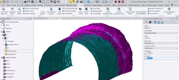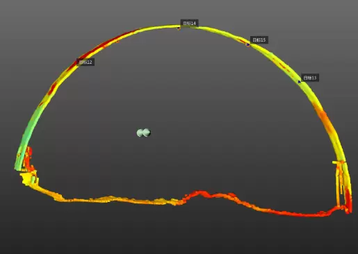 借助天宝TBC后处理软件,将不同时间段采集的点云数据进行叠加比对,实现多期数据的三维可视化分析。能够直观、定量地呈现隧道整体及局部区域的变形趋势,及时发现潜在安全风险。