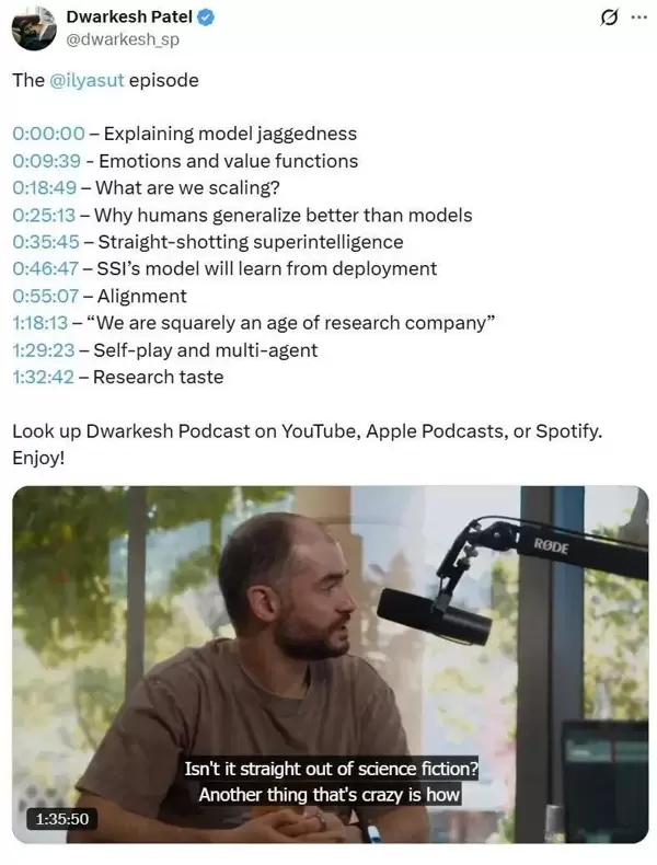 近年来,AI的发展路径正经历一场根本性变革。Ilya Sutskever在一次深度访谈中指出,行业已逐渐意识到单纯依赖模型规模扩增的模式难以为继,研究重心正在转向对智能本质的深入探索。