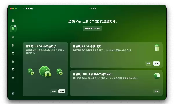 其“垃圾清理”功能尤为出色:启动后仅需10秒即可扫描出所有可删除项。上次使用时,一次性识别出18GB可清理内容,点击“清理”后自动完成操作,连Containers中的孤立文件和Logs里的过期日志都被彻底清除,比手动查找节省近1小时。
