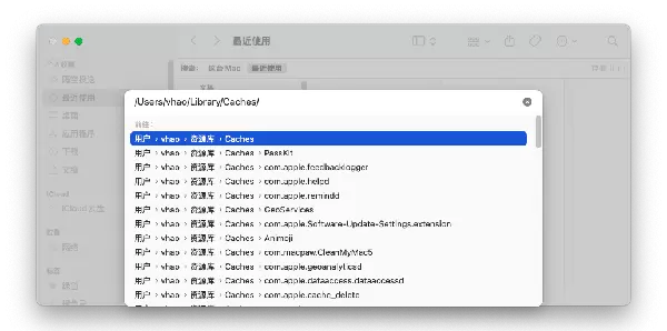 路径:打开访达 → 按下 Shift + Command + G → 输入 ~/Library/Caches → 回车。