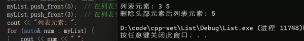 push_front() 和 pop_front() 则对应在列表头部进行插入和删除。