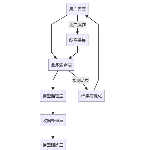 - 用户界面层:基于 PyQt5 实现,负责展示检测结果与接收用户指令。