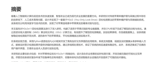 为帮助大家更高效地完成毕业设计,减少不必要的试错成本,本文分享一个具备实际应用价值和技术亮点的优质课题案例——基于深度学习的智慧农业苹果采摘定位辅助系统(含源码与论文参考)。