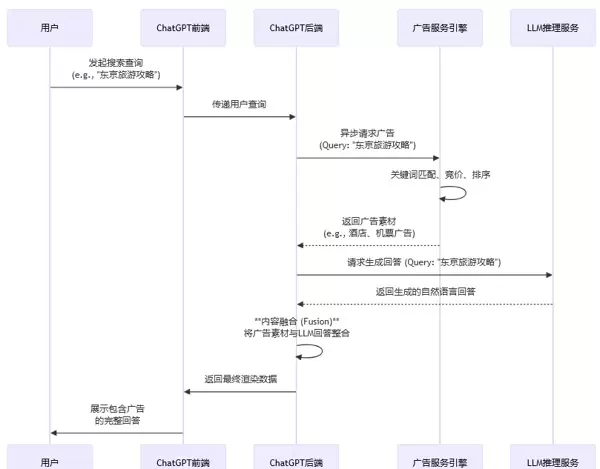 一次包含广告功能的典型ChatGPT请求,其后端处理流程可能如下图所示: