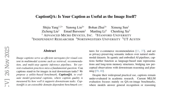 A:CaptionQA是由斯坦福大学等机构联合提出的一种AI图片描述质量评估系统。其核心机制是让AI仅依据自己生成的描述去回答问题,从而直接检验描述在实际任务中的有效性,而非依赖传统的语法匹配或与参考文本的相似度评分。