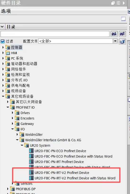 在 TIA Portal 中打开项目并进入“在线访问”界面,右键选中当前使用的 Profinet 网卡,点击“更新可访问设备”。系统将自动搜索网络中的 UR20-FBC-PN-IRT-V2 耦合器,无论其使用的是默认 IP 地址还是已配置的静态地址。