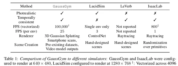 与现有工作相比,GaussGym在三个方面实现了关键突破: