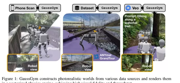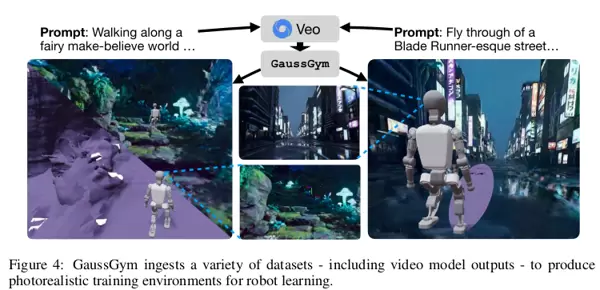 GaussGym 不仅可用于数字化现实空间(如通过手机扫描建模),其最具突破性的能力在于能够利用 Veo 等生成式视频模型创建全新的视频内容,并据此构建现实中难以获取或根本无法拍摄的环境类型,例如洞穴内部、灾难废墟或外星地貌。