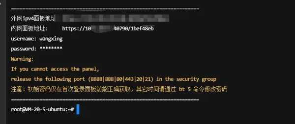 安装完成后,系统将输出默认的登录地址、用户名及密码信息,请妥善记录并用于首次登录访问。