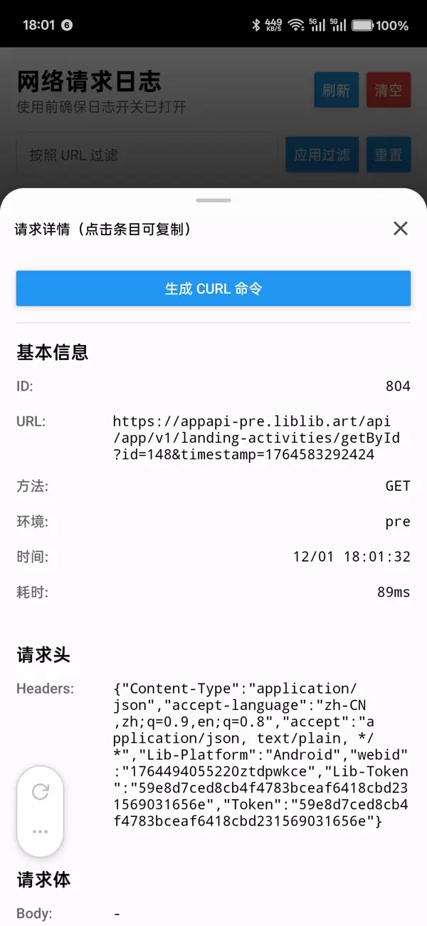 - 记录方式:在 HTTP 拦截层自动捕获请求与响应信息。