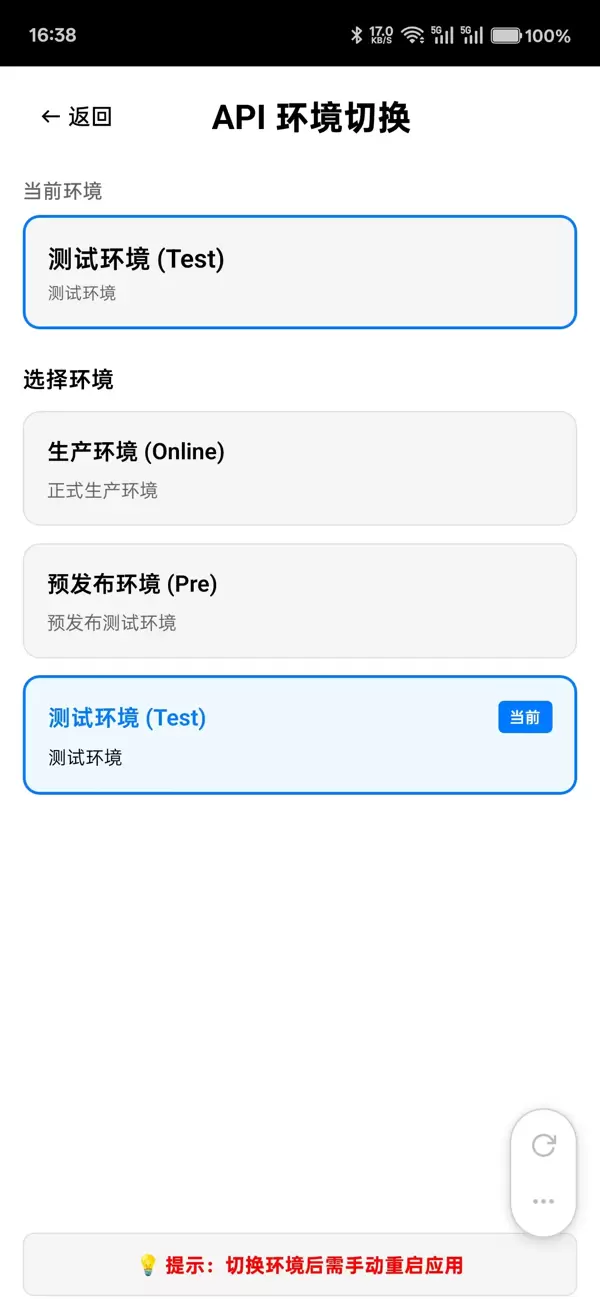 切换环境常需修改代码或配置文件;更改后必须重新打包安装;无法在运行时动态调整;多环境并行测试需安装多个版本的应用。