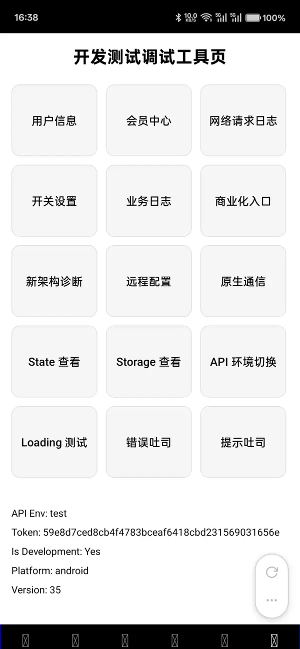 - 业务调试功能:例如用户信息展示、会员权限模拟、支付流程测试等高频调试场景。