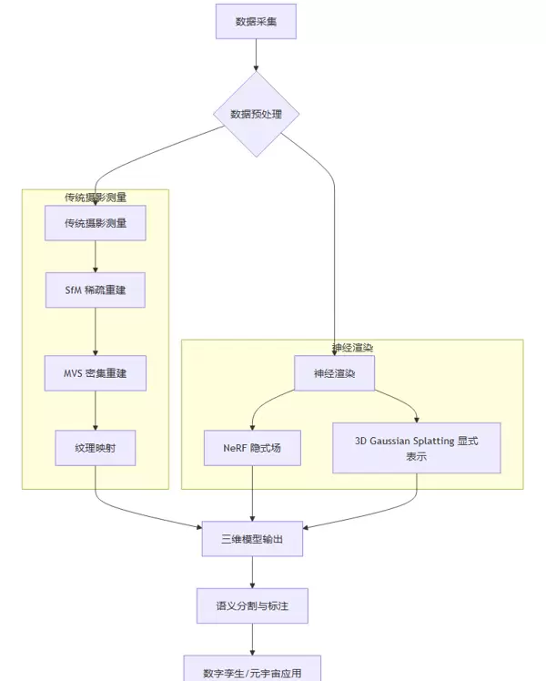 三维重建旨在利用二维影像序列或多源传感数据生成三维数字模型,目前主流方法包括传统摄影测量与新兴神经渲染两类。