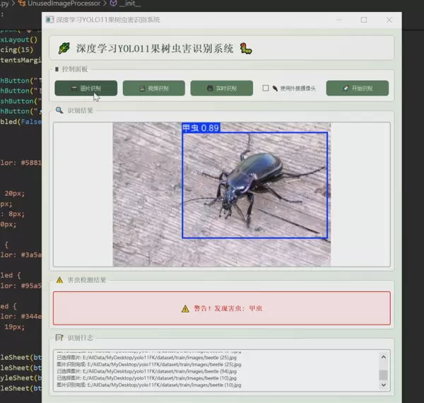 该系统是一款融合深度学习与计算机视觉技术的智能农业检测工具,旨在实现对果树上常见害虫的高效、精准识别。系统支持多种输入源,包括静态图片、预录视频以及实时摄像头采集,并通过PyQt5构建可视化交互界面,便于用户操作与结果查看。