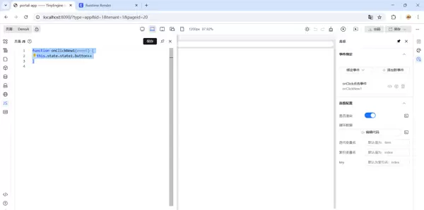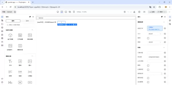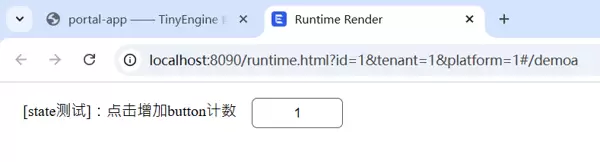 。若设计器内有更新内容,需重新加载运行时页面以同步最新 Schema。http://localhost:8090/runtime.html?id=1&tenant=1&platform=1#/demoa - 通过