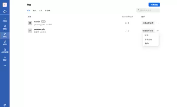 当某个分支已完成使命或不再需要时,可通过点击其右侧的设置菜单,选择“删除”操作来移除该分支,以保持项目结构整洁。