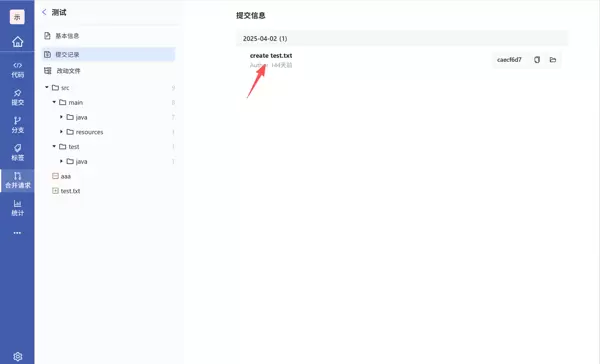 点击具体的提交记录名称,可深入查看该次提交的详细信息。