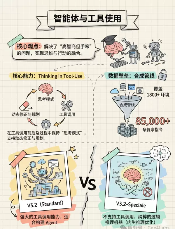 这一庞大训练集赋予了 V3.2 极强的泛化能力,即使面对未曾接触过的工具,也能快速理解并有效运用。