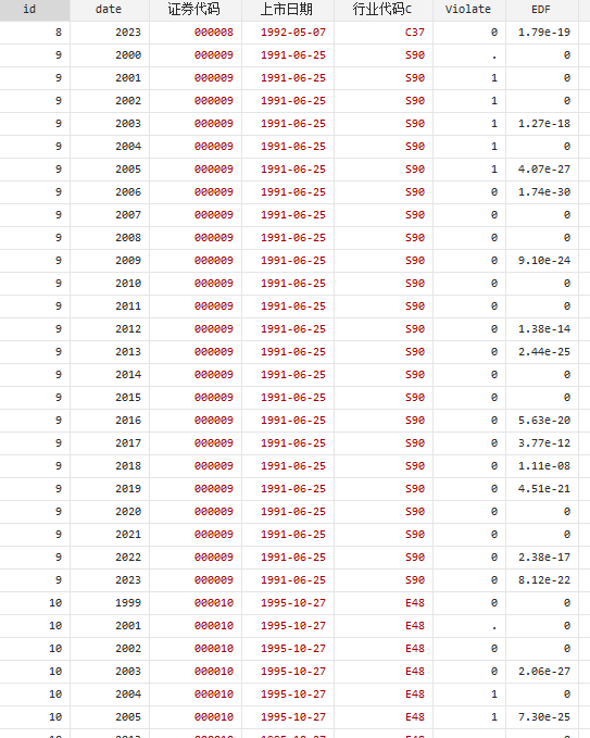 【2024年整理】A股公司违约概率风险数据stata代码do文件违约概率EDF结果1999-2023