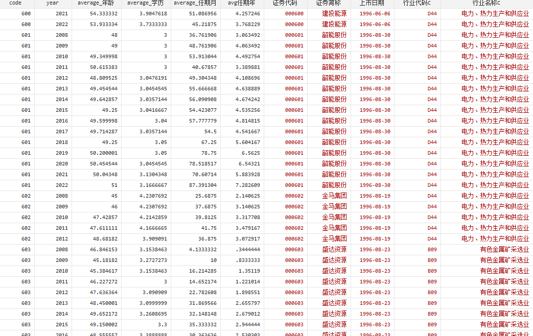 A股上市公司高管平均年龄、平均学历、平均任期数据(2008 - 2022年)数据格式及整体数据- 数据涵盖内容:A股上市公司高管平均年龄、平均学历、平均任期