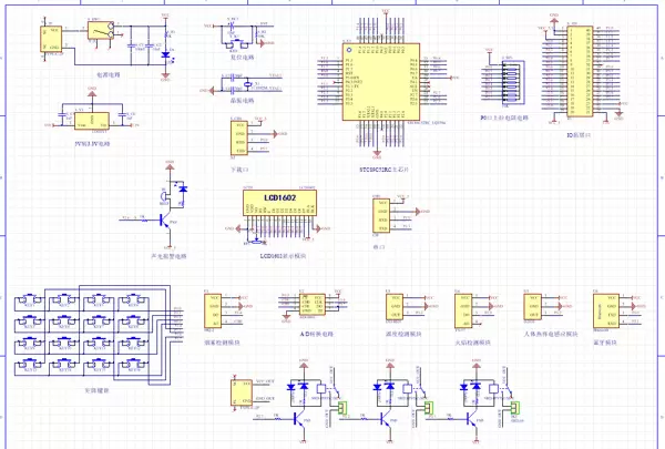 - 数据显示单元:LCD1602显示屏用于呈现实时监测数值与系统状态。