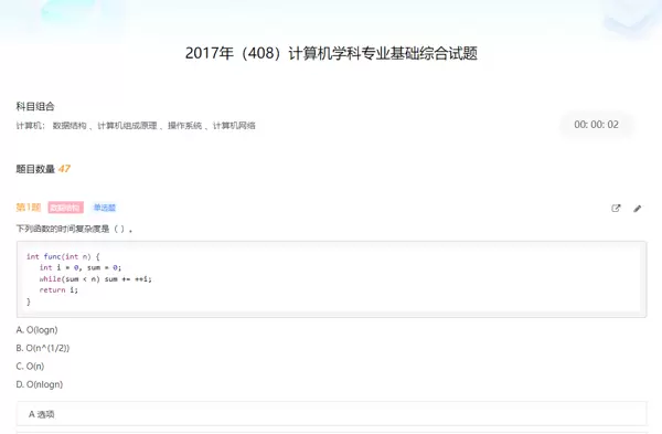 问题十一:某计算机主存按字节编址,由4片64M×8位的DRAM芯片通过交叉编址方式组成,并连接到32位宽的存储总线。主存每次最多读写32位数据。若double类型变量x的地址为804001AH,则读取该变量所需访问的存储周期数是( )。