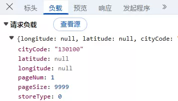 负载:对于POST请求,负载中携带了传递的参数。由于所有参数均通过请求体发送而非URL,可观察到查询城市代码(citycode)、页码(page)等信息,整体负载内容未加密;