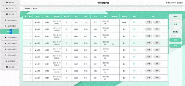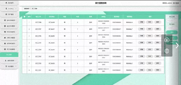在员工信息管理部分,管理员可通过员工工号和员工姓名进行信息检索,完成对员工信息列表的查询、添加新员工或删除已有员工等操作。对于具体的员工记录,系统也支持查看详情、修改资料以及删除信息等功能,操作界面如图5-11所示: